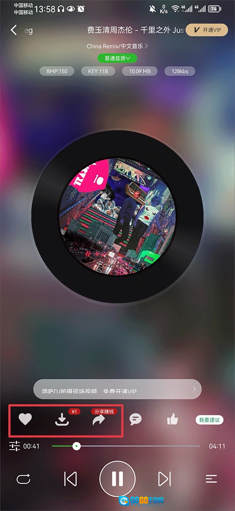 3、然后就可以听该音乐啦,喜欢的话还可以将歌曲、收藏、分享