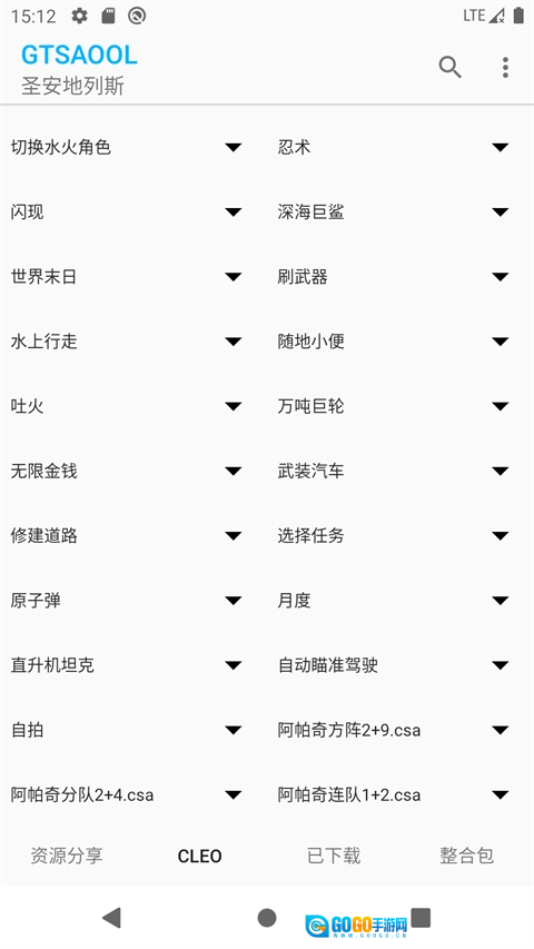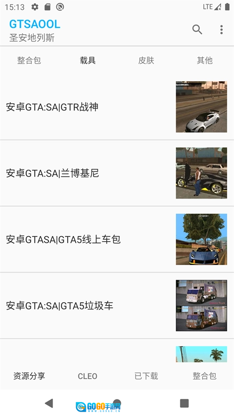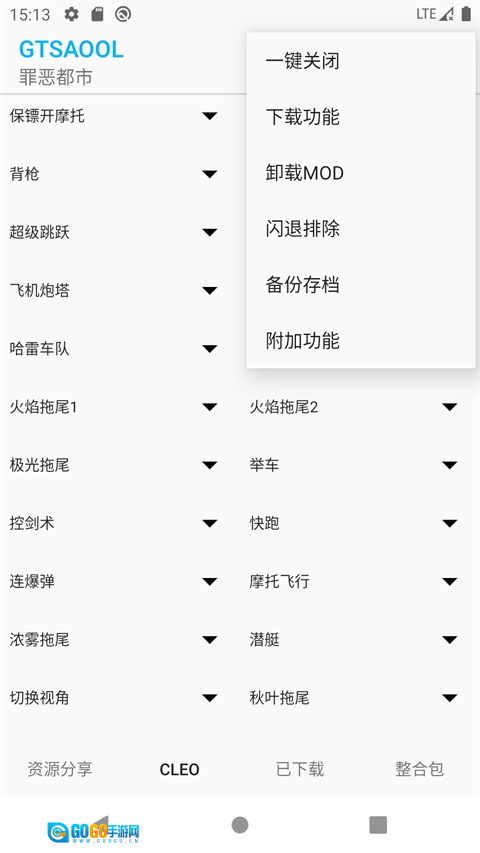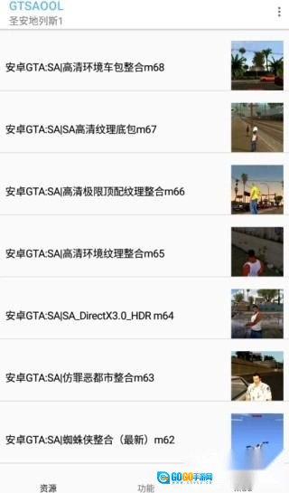 2、实时更新GTASA最新整合包,可在菜单(左上角三个点)处一键获取。