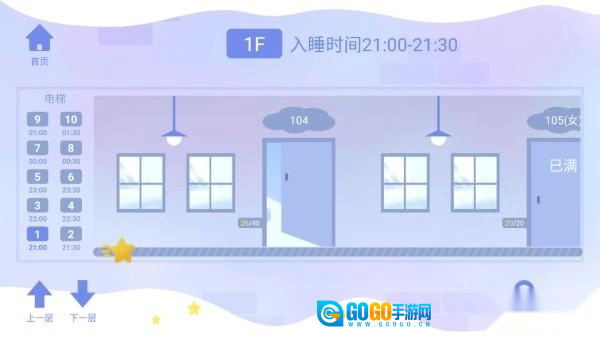3、点击不同楼层可选择不同的睡眠时间段,向右滑动可选择该时间段内不同的寝室。