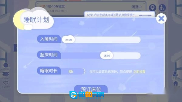 4、点击空床位,填写睡眠计划预定床位,预定该床位