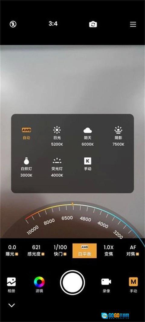 其实操作起来很简单,首先打开relens安卓版,进入专业拍照模式。在这个界面里能找到白平衡选项,它支持手动和自动两种模式,大家可以根据实际拍摄场景的需求来选择对应的模式就可以了。