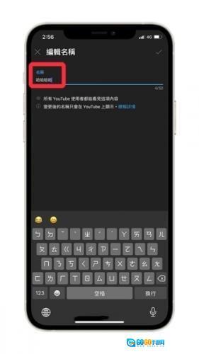 5、在「名称」栏中填写想要修改的YouTube频道名称,确认无误后保存设置,新名称就会生效。YouTube手机端修改频道名称的操作步骤:输入新的频道名称。