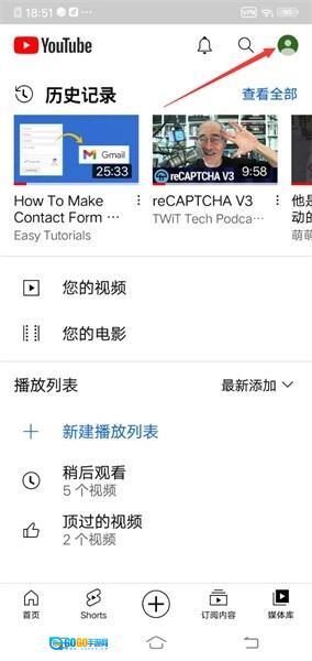 1、打开YouTube应用,点击界面右上角的「个人头像」图标。