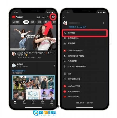 2、点击「你的频道」。YouTube手机版修改频道名称的入口是:你的频道。
