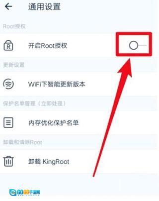 4、在通用设置界面找到“ROOT授权”选项,点击开启即可完成全部授权配置。