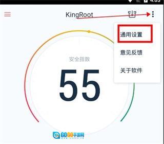 3、Root完成后,点击软件右上角“更多菜单”图标,在弹出的选项中选择“通用设置”。