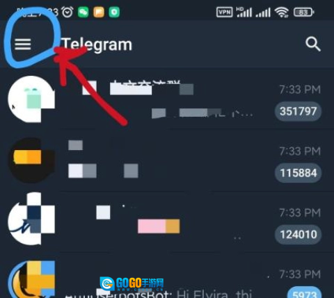 1、打开Telegreat应用后,点击界面右上角的放大镜形状图标。