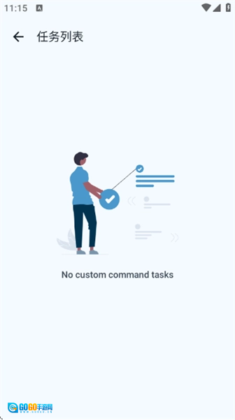 点击右上角的任务列表图标,就能查看自定义命令任务(初始状态下没有任务时会显示“No custom command tasks”)。