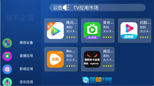 超级市场tv版是专门针对电视设备打造的软件商店,用户能够直接在电视端完成应用的安装与管理,无需依赖第三方工具或进行复杂操作,一键即可实现应用安装。无论是安装游戏、各类应用,还是对电视上的软件进行管理,都能轻松搞定。而且平台上的所有应用都经过了人工审核与机器查杀的双重处理,能够保障使用的安全可靠性。