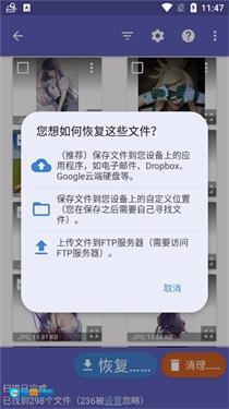 6、点击恢复后,你可以选择将文件保存到应用程序、自定义位置或者ftp服务器上。