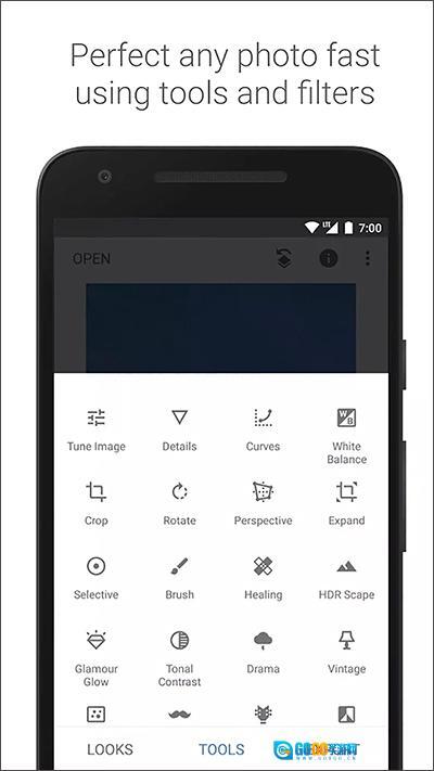 2、snapseed免费版软件支持一键修饰,即使是初学者也可以按照自己的方式编辑图片。