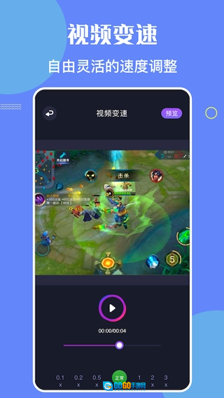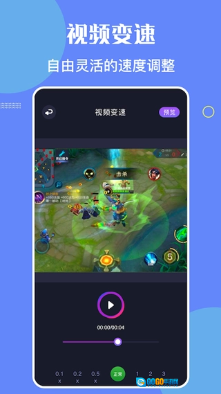 支持快速编辑、倒放、滤镜、水印、快放和慢放等功能,并可添加背景音乐。