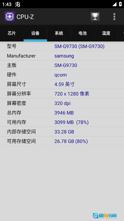 CPU-Z能够显示距离传感器、光线传感器等各类传感器的数据。