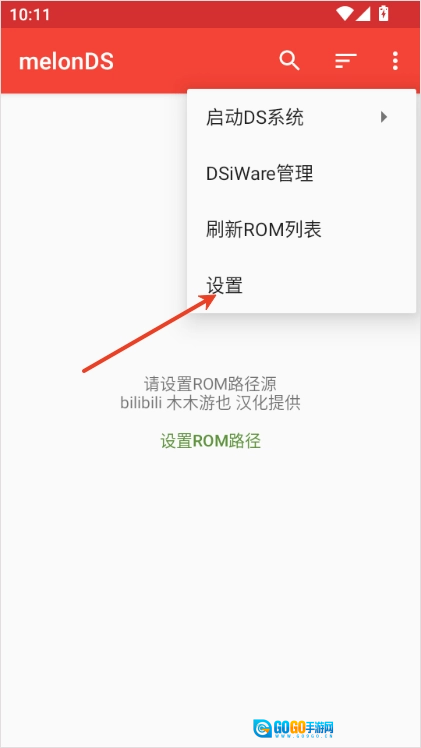 2、启动melonDS模拟器后,第一步点击【设置ROM路径】选项。