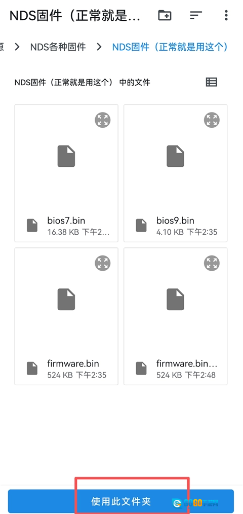 9、找到刚才NDS固件的文件夹,点击【使用此文件夹】。