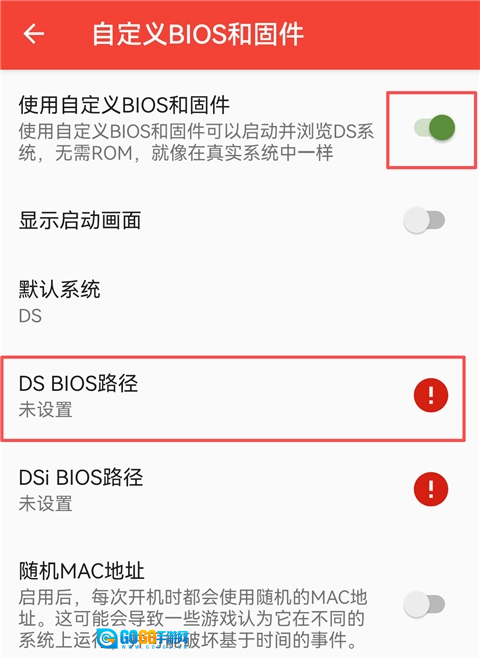 8、勾选【使用自定义BIOS和固件】,然后点击【DS BIOS路径】进行设置。