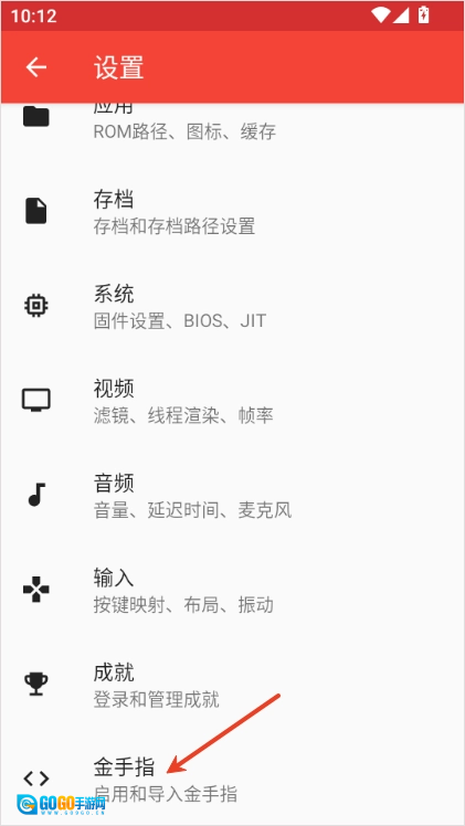 2、找到金手指选项并进入;
