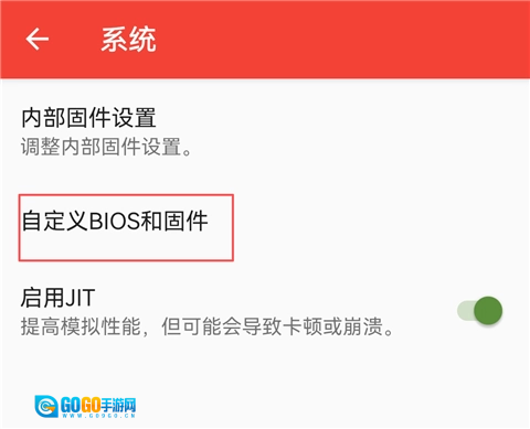 7、点击【自定义BIOS和固件】(部分游戏无需使用这些固件,此步骤可跳过)。