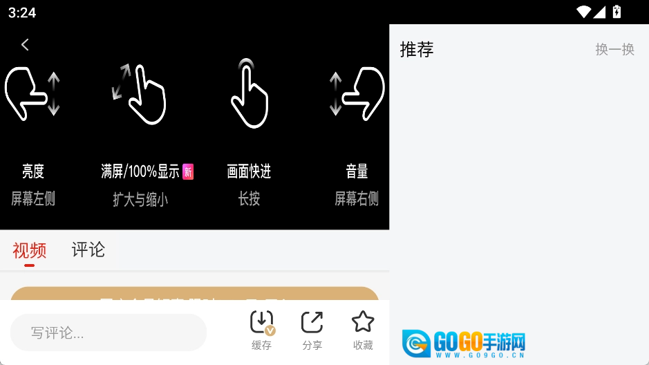 2、在视频画面上用手势操作控制播放