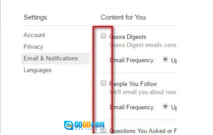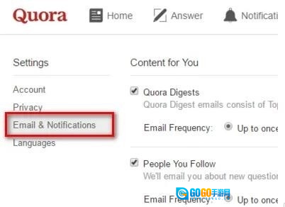 然后在弹出的Settings目录中,找到并勾选Email&Notification选项。