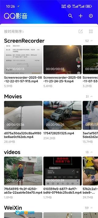打开QQ影音手机版应用,在这个应用里能够查看自己存储在本地的视频。
