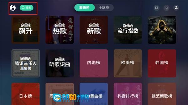 在本站提供的免费QQ音乐TV版里,打开应用后就能看到“搜索”框。