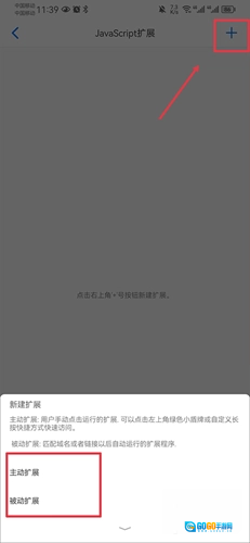 5. 进入该功能页面后,点击右上角的“+”按钮,接着在弹出的选项中选择“主动扩展”或者“被动扩展”。