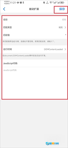 6. 最后,完善油猴插件代码等相关信息,点击“保存”按钮就可以了。