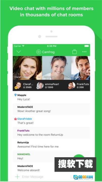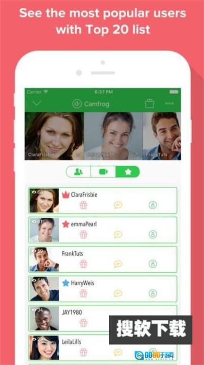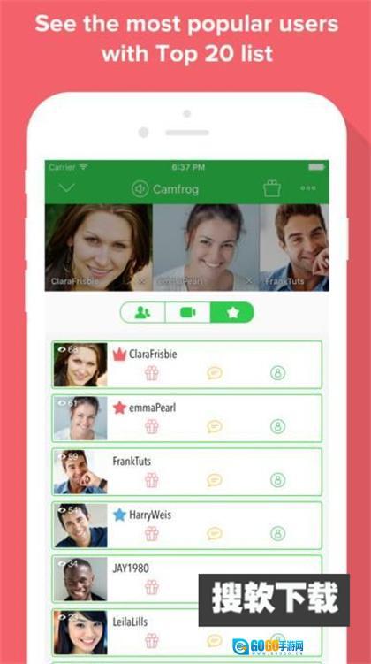 2. 借助手机,从数以万计的聊天室中选择其一加入,进而能与全球任意一人进行视频聊天。
