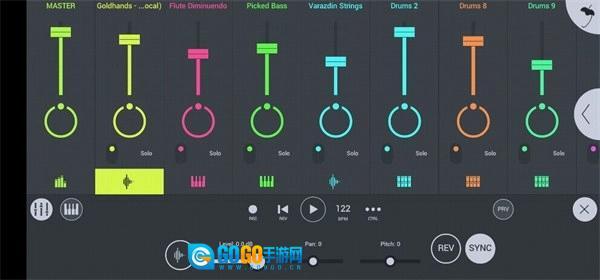 混音器:每轨静音、独奏、效果总线、声像和音量调节