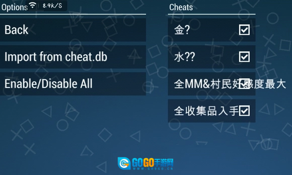 2、然后随便进入一个游戏,然后会看到菜单多了一个金手指选项,先不要管,退出ppsspp(如果在这里,进游戏会直接卡住的,那就在PSP文件夹内自行创建一个cheats文件夹,这样应该可以了)