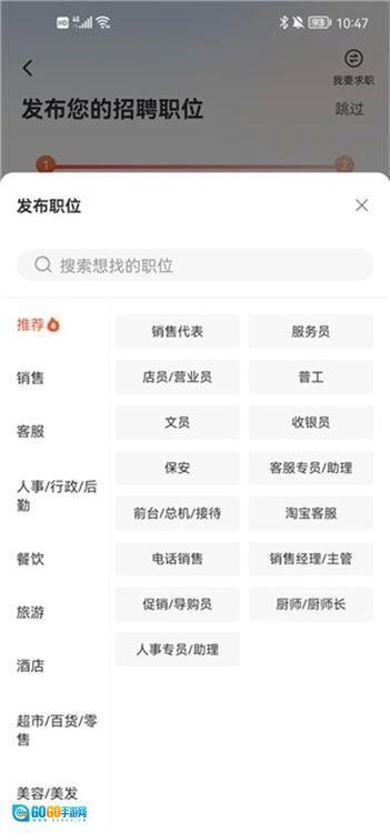 打开发布职位的页面后,挑选自己想要招聘的【职位】类型。