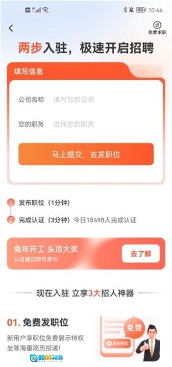 跳转到新页面后,填写公司名称与招聘职位信息,接着点击页面上的【马上提交,去发职位】按钮。