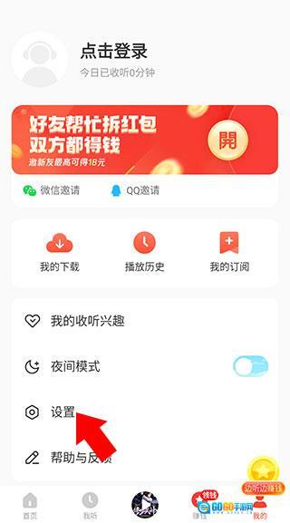 2、来到“我的”界面后,点击“设置”。