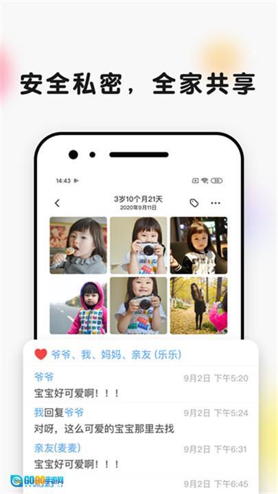 1、成长瞬间无损珍藏一处,永不丢失,注重隐私保护,收到邀请才能进入宝宝空间,私密安全。