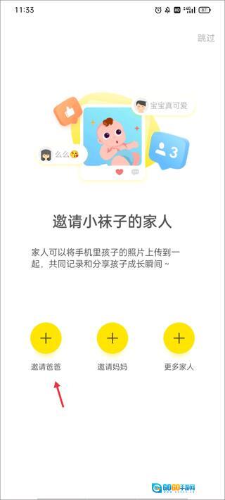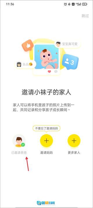 1、进入,给自己的小孩添加基本信息,添加成功后开始要请家人,你可以邀请爸爸和妈妈,也能点击更多家人