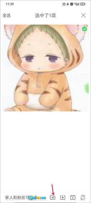 4、选中你要导出的照片后,点击下方红色箭头指向的图标
