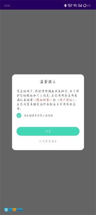 1、阅读完以上的条款后点击同意即可进入软件;