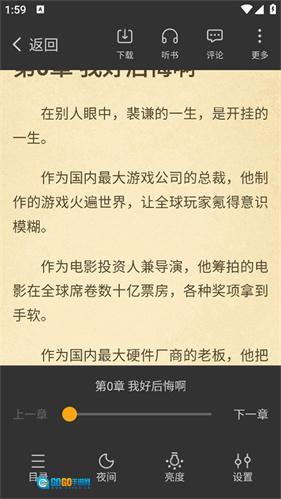 3、夜间模式拥有智能亮度调节功能,护眼效果突出,所以深受用户喜爱,为夜间阅读的用户带来了良好的保护。