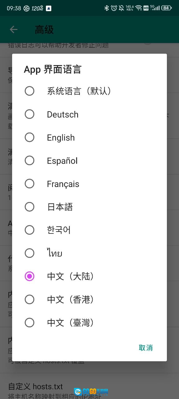 5、点击【界面语言】功能,选择中文(大陆)。