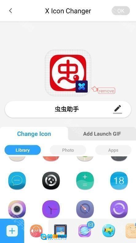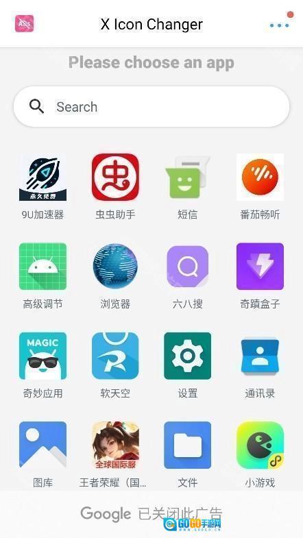 2、打开X Icon Changer的主界面,你将看到手机上已安装的所有应用图标。只需轻轻一点,你就能为选中的应用更换图标了。