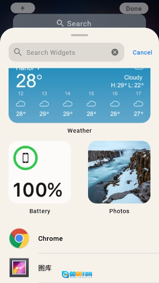 3、操作遵循iOS使用习惯:下滑呼出控制中心,上滑打开应用管理器,长按图标能够拖动调整排版,从左侧滑动可调出显示天气与时间的侧边栏。
