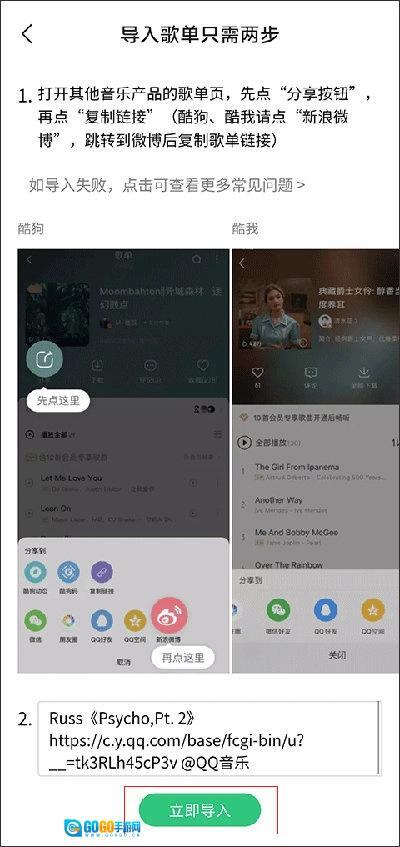 完成复制操作后,请把链接放置到下方标号为“2.”的输入区域,随后点击“立即导入”按钮。