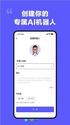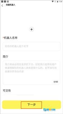 输入机器人的名称和简介,勾选可见性,进入下一步