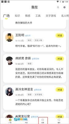 进入广场页面后,能看到多种类型的机器人,接着点击底部的创建选项。