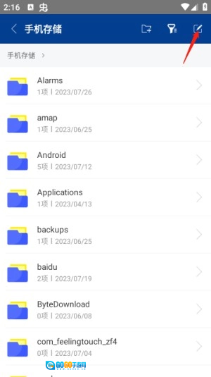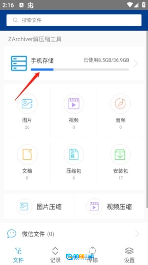 1、点击本站提供的Zarchiver Pro绿色版,进入文件界面后,选择手机存储选项。