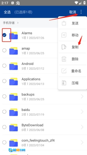 3、挑选要复制的文件,点击右上角的三个点图标,然后选择复制选项。