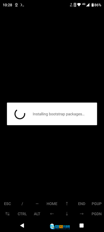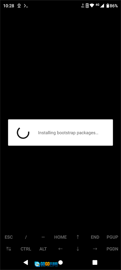 初次使用Termux时,需要等待“Installing bootstrap packages(安装引导程序包)”这一步完成,具体可参考下方图片。