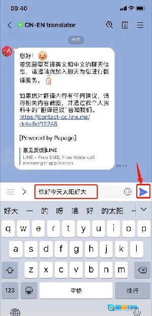 点击「输入简中文字」再点击「发送」