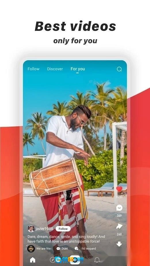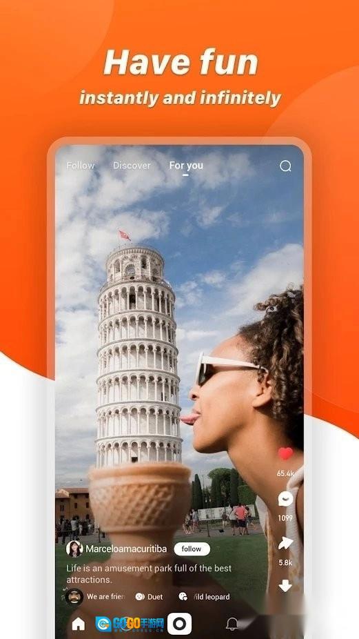 这里有海量的视频内容供你浏览,涵盖了各种类型的人物,包括你可能感兴趣的俊男靓女、知名艺人以及普通大众;还有各种有趣的表演形式,比如即兴舞蹈、新奇的挑战、精彩的技艺展示和流行的舞蹈;你可以记录下生活中那些令人捧腹的瞬间,与大家一同分享。
